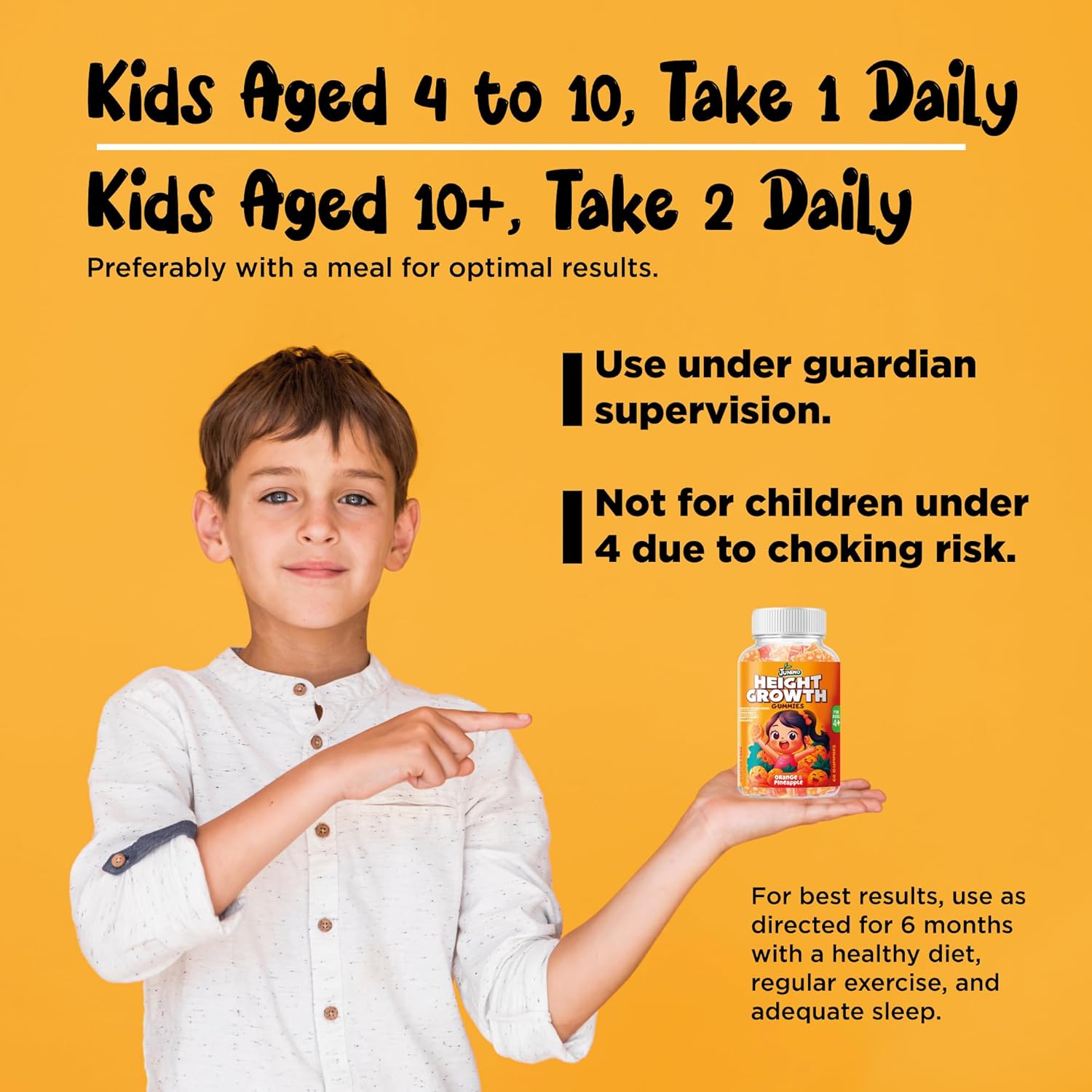 - Essential Amino Acids for Optimal Growth: Juneno Gummies are enriched with high-quality L-Arginine, L-Glutamine, and L-Ornithine. These amino acids are crucial for protein synthesis and muscle development, playing a significant role in your child’s height and overall physical performance. By providing children's bodies with these essential amino acids, our gummies help maximize their growth potential and support their overall vitality.