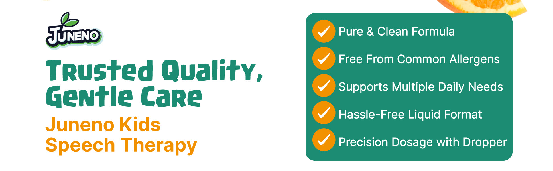 - Orange-Flavored, Kid-Friendly Liquid Formula: Juneno Speech Therapy Drops features a naturally sweet orange flavor that makes daily use enjoyable for kids. This sugar-free liquid can be taken directly or easily mixed into juice or water. Each 2 fl oz (60 mL) bottle includes a convenient pump for accurate, mess-free dosing, delivering 60 servings to help support speech, focus and daily wellness in a format both parents and kids love.